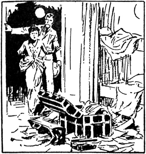 With suspicion of organized mutiny confirmed, they hurried to their quarters. Even their beds had been torn to pieces. A thorough search revealed the fact that only Lord Greystoke's revolvers and ammunition were gone. An undefinable something presaged bloody disaster!