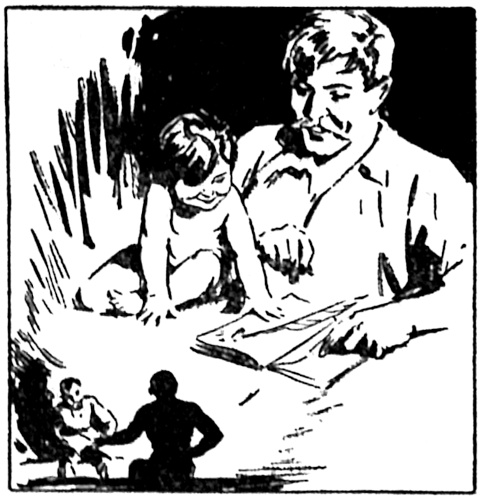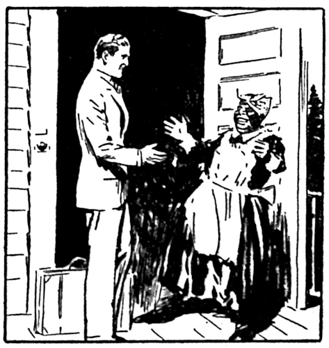 Tarzan became the idol of the ship. It happened that the rescued boy's grateful parents knew Jane's father. And so Tarzan easily found his way. The day after docking, a big black car stopped at the modest home and an black-haired giant leaped happily up the porch.