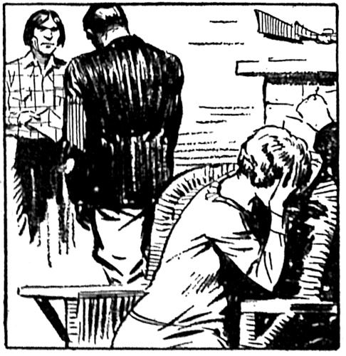 And behind them, over the edge of a low ridge, other eyes WATCHED THEM—close-set wicked eyes, gleaming beneath shaggy brows!