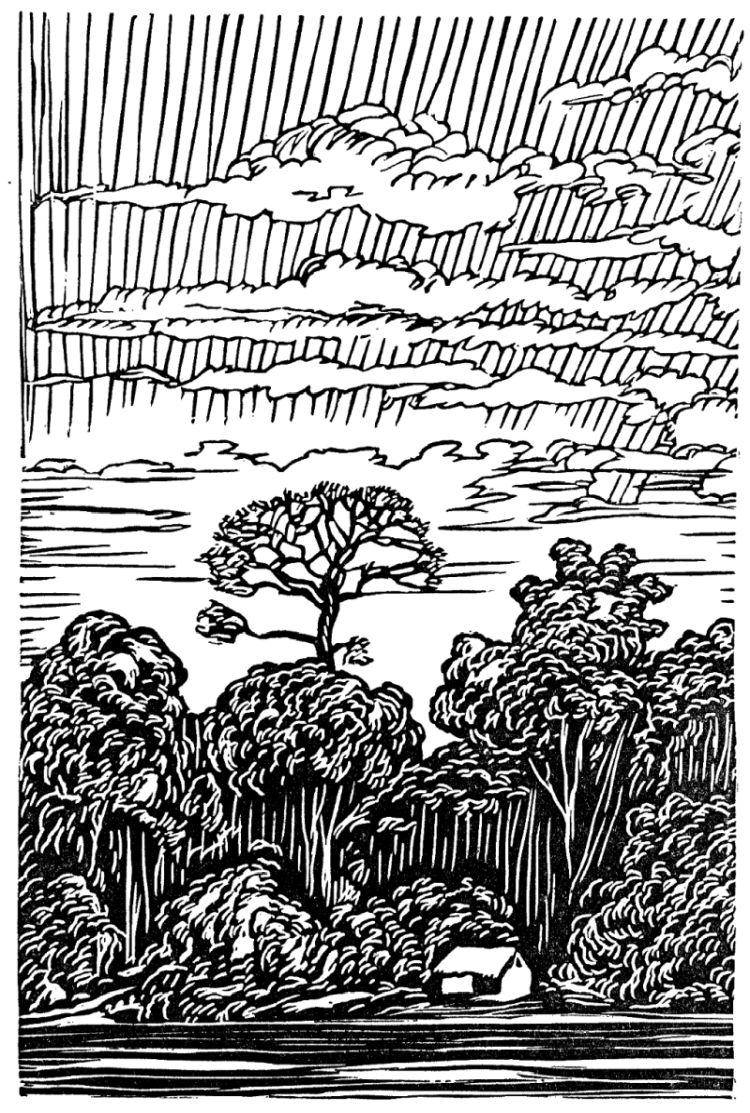 And the wood, that raft on the crest of the billow of chalk, was reached at last. No drought was there. There was an outer wild of the smaller trees, [Pg 198]guelder, wayfarer’s tree, white beam, holly, cornel and alder buckthorn, bound together with wild clematis, and brambles that sounded like dynamos with a multitude of bees. Inside the wood, wherever there was a clearing in the timber on a slope, the colours of the wild flowers fell away in a cascade. That seclusion might have been tranquil and confident with a knowledge kept secret from the fearful and anxious. Its life sang and hummed in innumerable tiny voices. It will last a long time, and it will not need to change. A yew kept a space for itself, a twilight area through which fell rods of light. One side of the yew was splashed by the sun, and then the sooty trunk was seen to be of madder and myrtle green. Its life, though ancient, could not have been more robust. In the shade of it a company of hover-flies were at play, as though they had been doing that from the beginning, and would do it forever. They poised motionless or slightly undulated, and gyrated sideways and vanished, to reappear instantly in the same place, atoms joyous and sure in a changeless world. Sometimes one of them was caught in a beam of light and then that morsel of life became a bubble of gold in the air. It went out. It appeared again. It could shine when it pleased.