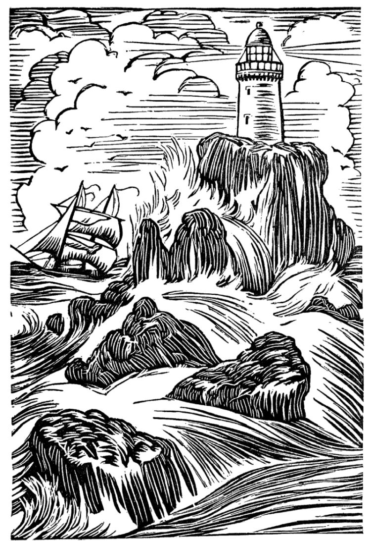 The Foreland, to which for hours our work seemed to bring us no nearer, which had been mocking the efforts to approach it of an obstinate little ship with a crew too stupid to realise that efforts to reach an enchanted coast were futile, suddenly relented. It grew higher and tangible. At last we felt that it was drawing us, rather too intimately, towards its overshadowing eminence. The nearer it got, the greater grew my surprise that in a time long past man had found the heart to put off in a galley, to leave what he knew, and to stand in to an unknown shore, if it offered no more than our [Pg 245]cape. The apparition of the Foreland was as chill as the shadow in the soul of man. It appeared to have some affinity with that shadow. Though monstrous and towering, it seemed buoyant and without gravity, an image of original and sombre doubt. Above our mast, when I looked up, earthquakes and landslides were impending, arrested in collapse. But I thought they were quivering, as though the arrest were momentary. That vast mass seemed based on rumblings, shouts, and hollow shadows. Our craft still moved in, projected forward on vehement billows, past black jags in blusters of foam, and then anchored with calamity suspended above. Our ship heaved and fell on submarine displacements. The skipper and his man went below.