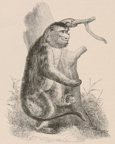 [677] “‘Mandrill’ seems to signify a ‘man-like Ape,’ the word ‘Drill’ or ‘Dril’ having been anciently employed in England to denote an Ape or Baboon. Thus in the fifth edition of Blount’s ‘Glossographia, or a dictionary interpreting the hard words of whatsoever language now used in our refined English tongue ... very useful for all such as desire to understand what they read,’ published in 1681, I find ‘Dril, a stonecutter’s tool wherewith he bores little holes in marble, etc. Also a large overgrown Ape and Baboon, so called.’ ‘Drill’ is used in the same sense in Charlton’s Onomasticon Zoicon, 1668. The singular etymology of the word given by Buffon seems hardly a probable one.”—Huxley’s Man’s Place in Nature, p. 10, 1863.