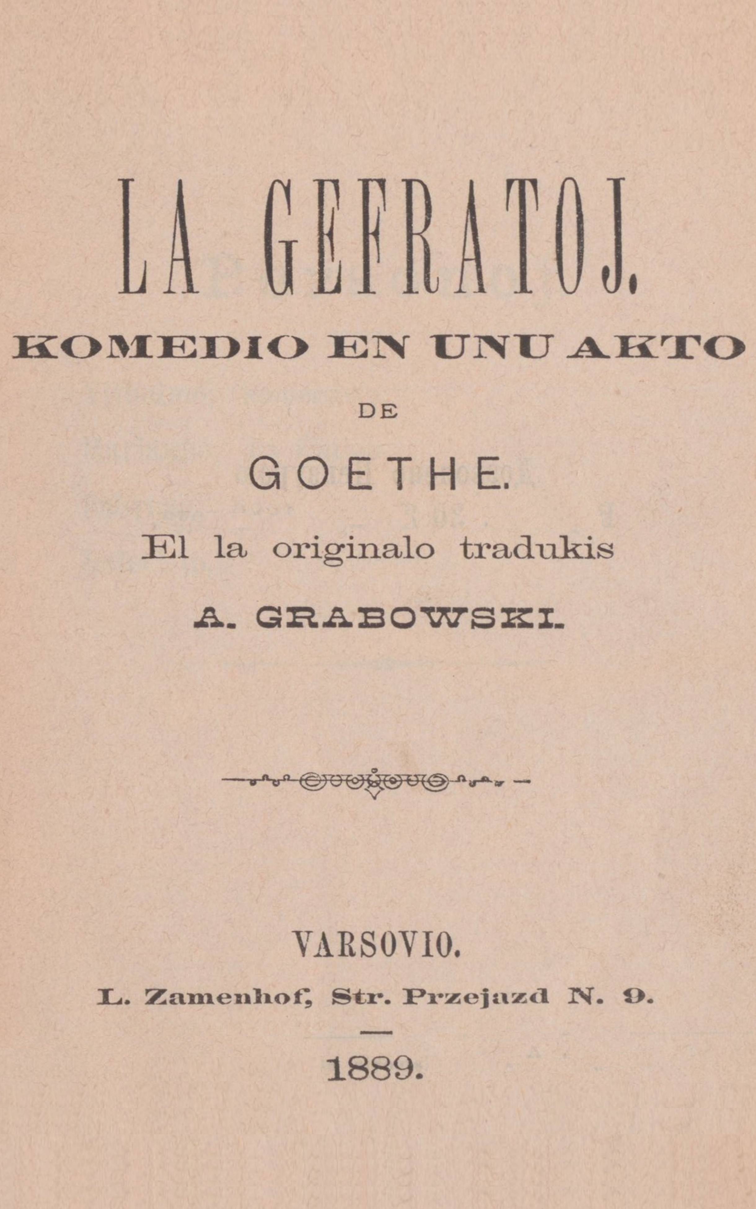 | 19. | A. Grabowski. La Gefratoj. Komedio de Göthe (internacie) | 0,15 |