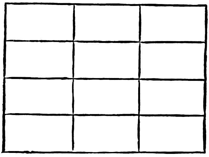 69. The cases are made upon the same “former” on which the quarter-pound rocket-cases are rolled. They consist of a piece of 70-lb. brown paper and a piece of imperial board. The sheet of brown paper is cut into strips, as represented in the annexed diagram, by which it will be seen that each sheet furnishes enough paper for six cases. The imperial board should be divided, as shown in the following sketch, 112, into twelve equal strips—thus: so that two sheets of 70-lb. brown paper and one of imperial board will give material for one dozen cases for five-pointed stars. The paper and board must be well pasted, and the rolling board used unsparingly, as cases for this purpose cannot be too strong and hard.