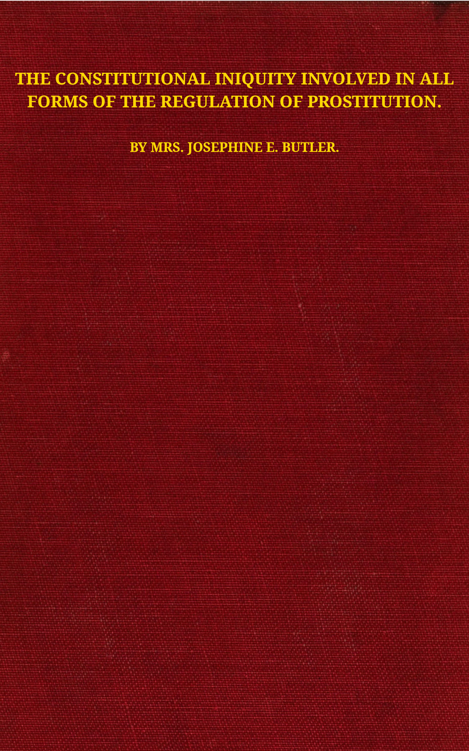 The above Acts, and all similar laws and regulations, are utterly and entirely opposed to the above-stated principles; they are a deadly blow at the very heart of these principles, and they are not worthy of the name of laws. It behoves every citizen who rules his life by the commands of the Great and Eternal Law-Giver to oppose himself to these base laws, these bastards amongst the legitimate laws of our country. These Acts and all similar regulations of prostitution, allow, and enforce, the accused to incriminate herself. They sanction her being intimidated or persuaded to write herself down as guilty before she has had any kind of trial whatever. (This was done in England by means of what was ironically called a “voluntary submission.”) They hold the accused to be guilty until she can prove herself innocent (and that in a matter in which it is impossible, except by some very dreadful alternative, for a woman to prove her innocence.) They condemn and punish on suspicion merely (on the suspicion of the police only) and no positive proof is required. They grant no open trial. They imprison arbitrarily, and again and again. They require no witnesses other than the suspecting and accusing Government-paid spy-police. They allow the accusation to be made by the Executive. They require from the Executive no reasons whatever for the suspicion and the accusation. They try the suspected and accused persons not in open court, but in a secret court. Finally, they make redress all but impossible for persons who have been falsely accused and cruelly outraged.