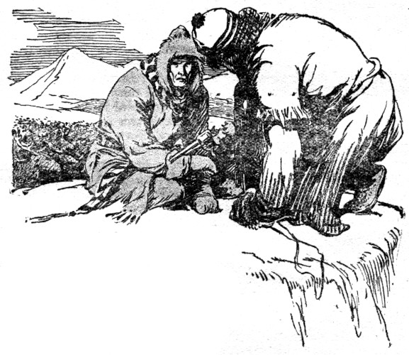 "That impulse to kill is hard to resist, eh? Well, the thing worked out all right, but I lost a damn good hat. Headquarters will likely soak me seven dollars and a half for another one. Hold still! I want that knife. All right, Yeyik, up on the rock."