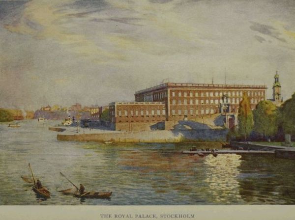 Soon the Saga reaches the rocky archipelago of the Skärgård and begins to forge her way through the innumerable islands that lie at the mouth of the river Göta älv, with a fair wind to help and a white ribbon of foam trailing from both her sides. Then, after exchanging signals with the shore, we pass various lighthouses and are soon fast to a large wharf with lights gleaming all about us. Lights fringing the river and harbour or running up the low-lying hills that surround the city; shipping of every kind, from great, imposing liners to freight steamers or fishing-smacks; whistles sounding, bells ringing, while all around is that mysterious undercurrent of sound that attests the presence of a large city. Quickly we land and notice the snow that lies thick on the ground, while there is a nippiness in the dry night air so invigorating that, though I realise the temperature is considerably below[199] freezing-point, I am hardly conscious of it. And, following my porter, I hail a taxi and hasten to the main station to take the night train to Stockholm.