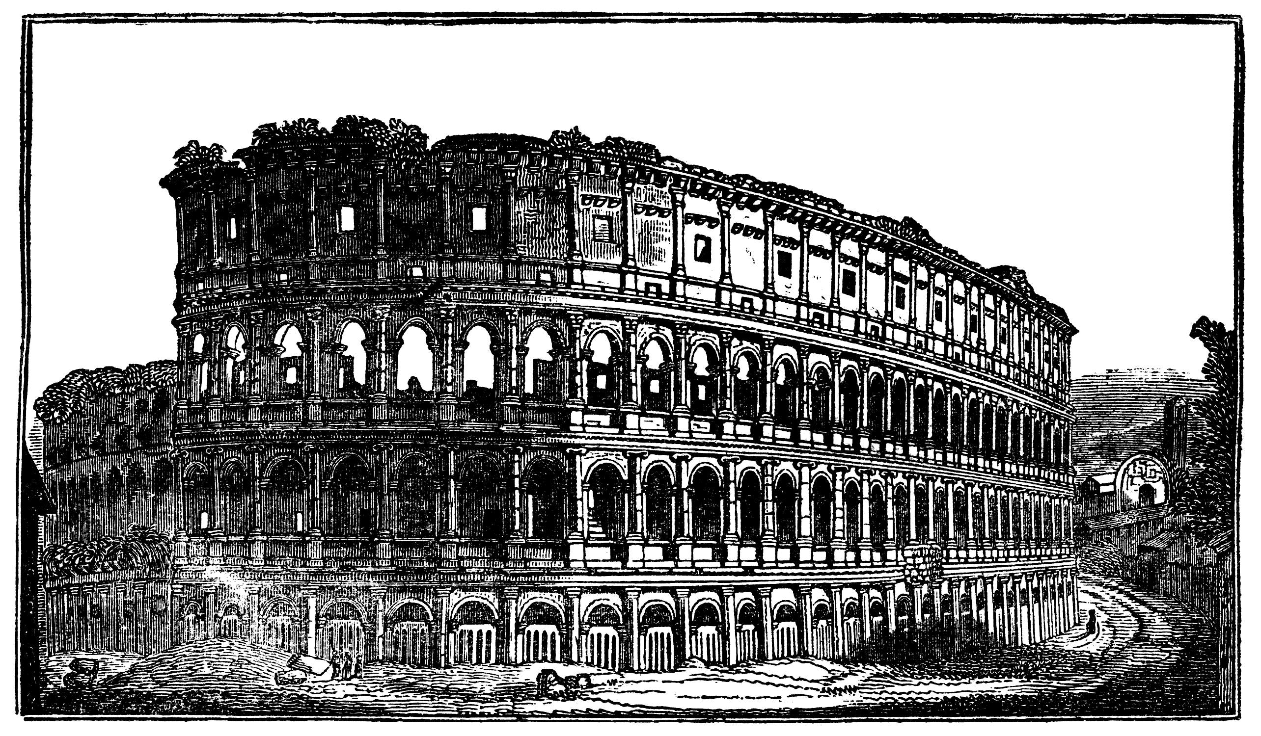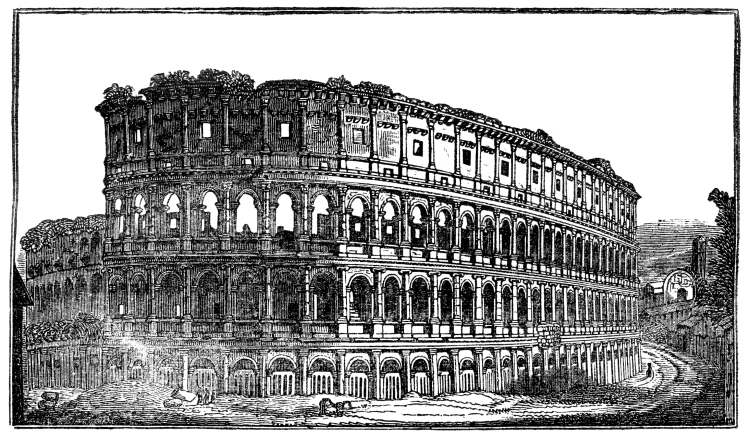 When the imperial power was firmly established at Rome, the sports of the amphitheatre were conducted upon a scale to which the Consuls of the republic had scarcely dared to aspire. Caligula, on his birth-day, gave four hundred bears, and as many other wild beasts to be slain; and on the birth-day of Drusilla, he exhibited these brutal spectacles, continued to the succeeding day on a similar scale[1]. Claudius instituted combats between Thessalian horsemen and wild bulls; and he also caused camels to fight for the first time with horses. Invention was racked to devise new combinations of cruelty. Many of the emperors abandoned themselves to these sports with as passionate an ardour as the uncultivated multitude. Sensuality debases as much as ignorance, because it is ignorance under another name. Claudius rose at daylight to repair to the Circus, and frequently remained, that he might not lose a single pang of the victims, while the people went to their afternoon meal. Sometimes, during the reigns of Claudius and Nero, an elephant was opposed to a single fencer; and the spectators were delighted by the display of individual skill. Sometimes, hundreds and even thousands of the more ferocious beasts were slaughtered by guards on horseback; and the pleasure of the multitude was in proportion to the lavishness with which the blood of man and beast was made to flow. The passion for these sports required a more convenient theatre for its gratification than the old Circus. The Colosseum was commenced by Vespasian, and completed by Titus (A. D. 79). This enormous building occupied only three years in its erection. Cassiodorus affirms that this magnificent monument of folly cost as much as would have been required for the building of a capital city. We have the means of distinctly ascertaining its dimensions and its accommodations from the great mass of wall that still remains entire; and although the very clamps of iron and brass that held together the ponderous stones of that wonderful edifice were removed by Gothic plunderers; and succeeding generations have resorted to it as to a quarry for their temples and their palaces; yet the “enormous skeleton” still stands, to show what prodigious works may be raised by the skill and perseverance of man, and how vain are the mightiest displays of his power when compared with those intellectual efforts which have extended the empire of virtue and of science.