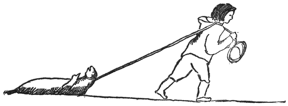 Die vleis van die walrus wat ons in Jones-Sond doodgemaak het, het ons saamgebring [150]na Pond-Baai en onder die Eskimo’s uitgedeel. Hulle was blykbaar baie bly, want dit is ’n uitstekende hondevoer, en mens kry daar nie meer walrusse nie. As terugbetaling vir ons presente het ’n paar vrouens aan boord gekom en die vleis afgeskrap van die walrus- en seehondvelle wat ons nog nie klaar gemaak het nie. Daarna is hulle gesout, in vate gepak en toegemaak om na die museum te gaan. Dit was ’n verskriklike werk om al die vetterigheid van die dek af te kry, en vir ’n hele paar dae was dit so glyerig soos ’n skaatsbaan.