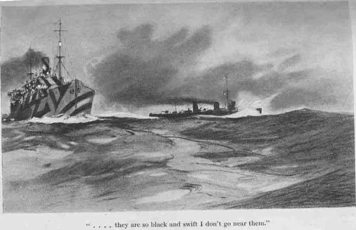 The First Lieutenant suggested that we should give her gunfire, but I pointed out that I had good reason to suspect her of being a wolf in sheep's clothing, and as he had not seen her he could hardly question my judgment. I was going forward, when I accidentally overheard the Navigator and the Engineer talking in the wardroom. I listened.
