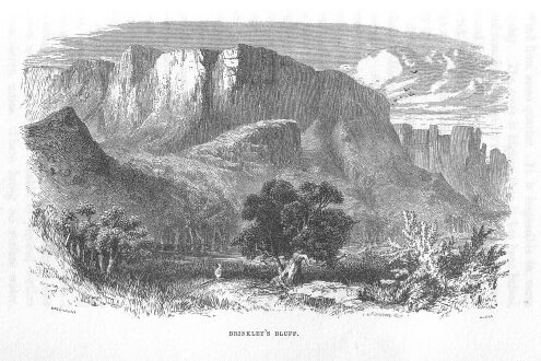 In his remarks on the second division Mr. Waterhouse states much that is valuable. He estimates the height of Mount Hay at two thousand feet, regarding it as the highest point of the McDonnell Range, which is the natural centre of this part of the continent. Mr. Waterhouse only saw Chambers Pillar from a distance, but he had an opportunity of examining a smaller hill of the same character, and found it to be composed of a soft loose argillaceous rock, at the top of which was a thin stratum of a hard siliceous rock, much broken up. "The isolated hills appear to have been at some remote period connected, but from the soft and loose nature of the lower rock meeting with the action of water, had arisen a succession of landslips. These have been washed away and others have followed in their turn; the upper rock, from being undermined, has fallen down and broken up, supplying the peculiar siliceous stones so widely distributed on parts of the surface of the country."
