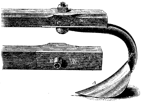The object of the device exhibited in the engraving is to allow the teeth of a cultivator to turn slightly and avoid obstructions, while they will follow at all times the line of draft, so that in turning the cultivator there is no risk of breaking the teeth or their shanks, or of overturning the implement. The cultivator blade, A, may be of any desired form, and it is secured to the curved shank, B, which is pivoted by a bolt to the beam, C. On the under or lower side of the beam is an iron plate, D, having a projecting socket, E, which is the stud or pin on which the eye of the shank turns. A bolt passing through the socket and beam holds the shank in place. Farmers will readily perceive the advantages of this device. It may be applied to any or all of the different cultivators now in use. Patented Sept 3, 1867, by B.F. Hisert who may be addressed for rights to make or sell at Norton Hill, Green Co., N.Y., or address G.W. King, Scoharie, N.Y.