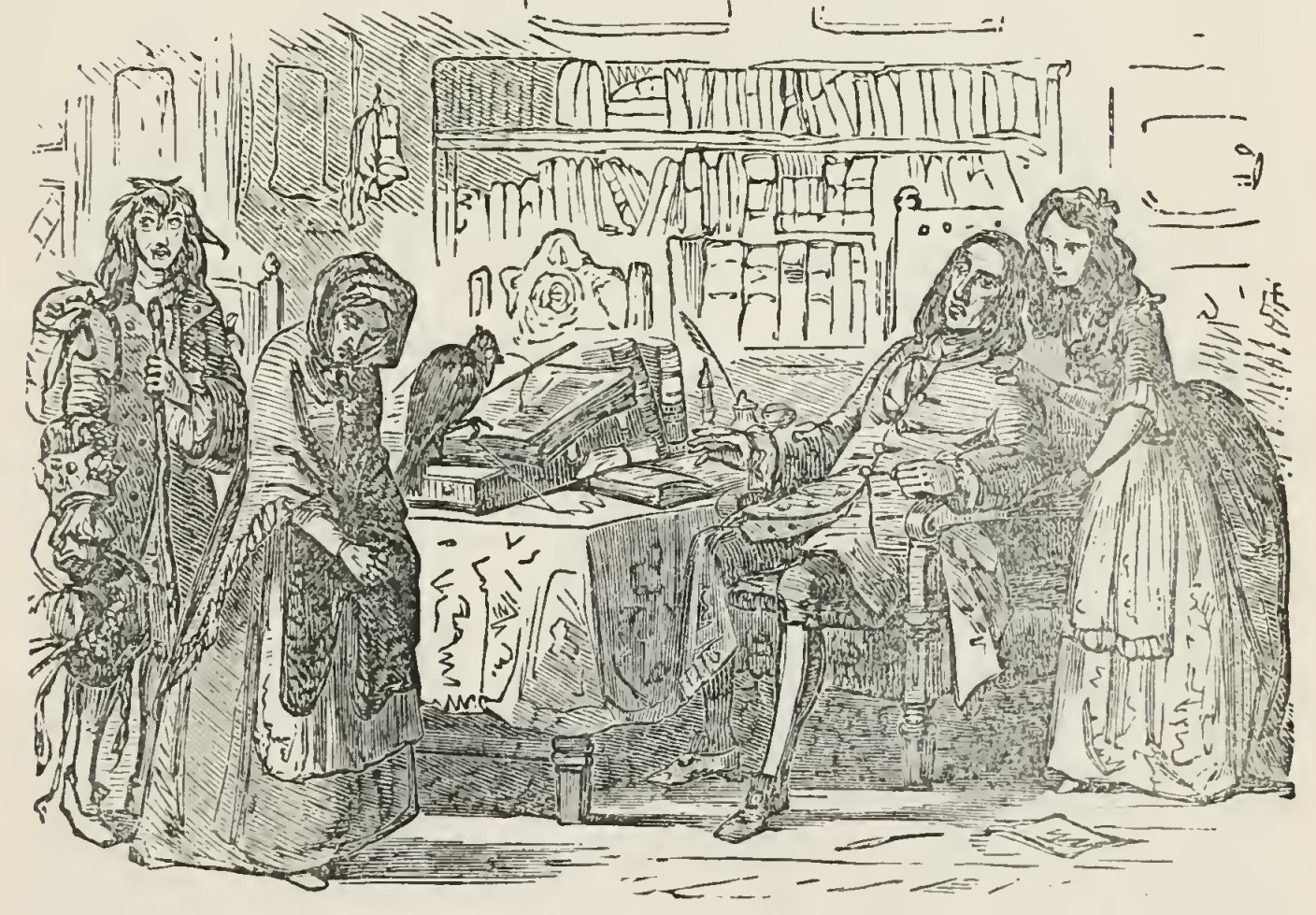 The raven in this story is a compound of two great originals, of whom I was, at different times, the proud possessor. The first was in the bloom of his youth, when he was discovered in a modest retirement in London, by a friend of mine, and given to me. He had from the first, as Sir Hugh Evans says of Anne Page, ‘good gifts’, which he improved by study and attention in a most exemplary manner. He slept in a stable—generally on horseback—and so terrified a Newfoundland dog by his preternatural sagacity, that he has been known, by the mere superiority of his genius, to walk off unmolested with the dog’s dinner, from before his face. He was rapidly rising in acquirements and virtues, when, in an evil hour, his stable was newly painted. He observed the workmen closely, saw that they were careful of the paint, and immediately burned to possess it. On their going to dinner, he ate up all they had left behind, consisting of a pound or two of white lead; and this youthful indiscretion terminated in death.
