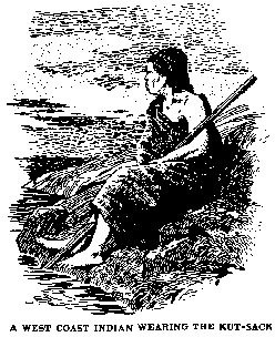 The Kutsack, or Kats-hek is a loose cloak or mantle woven from the soft inner bark of the yellow cedar tree. Indian mats were made from the inner bark of the red cedar.