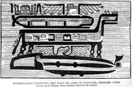 There is an island larger than the rest, called Ho-moh-ah, where once the tribe of Seshahts made their summer home. It lies well out to sea, and on the sheltered side the Seshahts lived. The chief of the tribe was Shewish. His house was large, so large that when he called his people to a great potlatch, they all could find within its walls an ample space to feast and dance. His house like all the old time dwellings was built on simple lines, the three great roof-logs each of single trees, upheld by posts of ample girth. The sides and roof of wide-split cedar boards were adzed to lie close, and fastened into place by twisted cedar rope. Within, on either side was raised a wooden platform two feet high. This platform and a portion of the floor adjoining it in sections was partitioned off by screens of cedar mats. Each section was the home of such as claimed close kinship with the chief. The centre of the lodge for its whole length was common to all who lived therein. The people cooked their food upon the common fire, the smoke of which curled up and found an exit through the smoke hole in the roof. The section tenanted by the family of Shewish lay furthest from the door. No feature except one marked it as different from the homes of lesser men. A pictographic painting--the Coat of Arms of the great family of Shewish hung upon the wall. The picture told in graphic form how came the name of Shewish to be famed among the hunters of the whale. It also told the legend of the THUNDER BIRDS.
