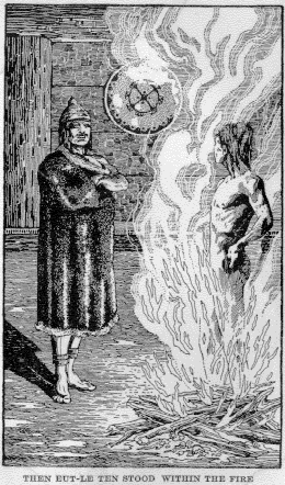 And the mother knowing him to be a spirit-child, rejoiced and blessed his errand. They next sought out the little ones who saved themselves by clinging to the low branched tree, and from them they learned the trail the old witch took. Then sallied forth brave Eut-le-ten alone, off to give battle to E-ish-so-oolth.