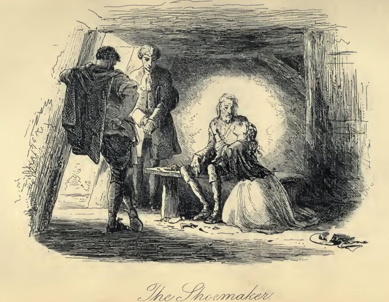 She kisses his lips; he kisses hers; they solemnly bless each other. The spare hand does not tremble as he releases it; nothing worse than a sweet, bright constancy is in the patient face. She goes next before him—is gone; the knitting-women count Twenty-Two.